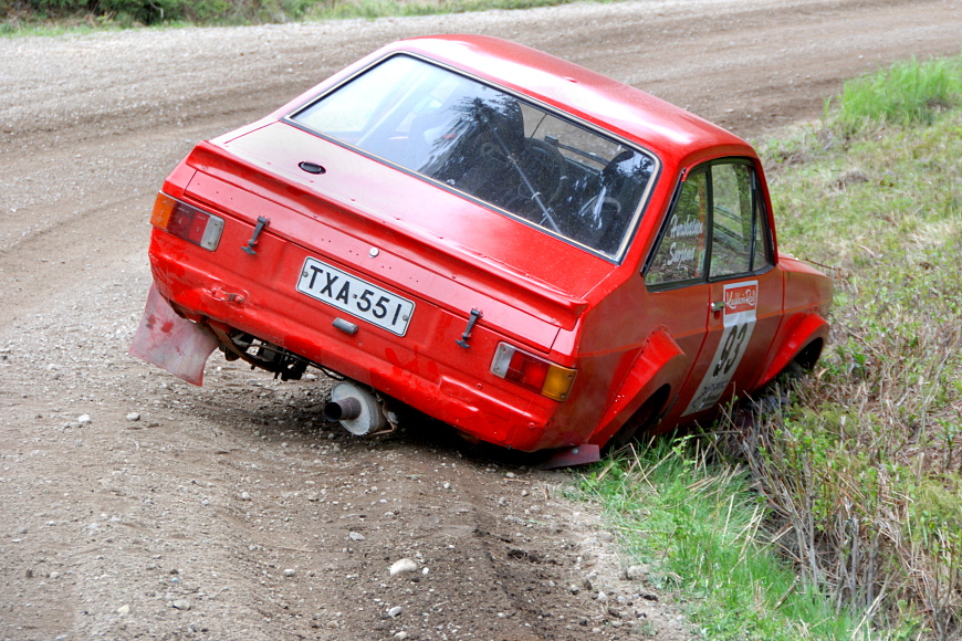 Kuulu ensin kolina ja tömäys, sitten joku huutaa "ei oo pyörää". Oisko jarrutuksessa hajonnu jotain.